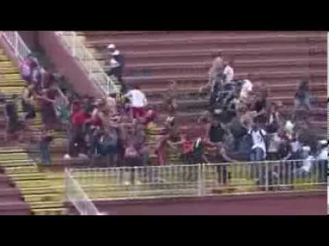 Uma briga generalizada na arquibancada da Arena Joinville paralisou o jogo entre Atlético-PR e Vasco aos 17 minutos do primeiro tempo, quando o Furacão vencia por 1 a 0, na tarde deste domingo. Torcedores do Furacão e cruz-maltinos protagonizaram cenas de selvageria, com trocas de socos, pontapés. A polícia demorou a agir e, somente depois de alguns minutos do início da confusão, alguns policiais apareceram para conter o tumulto.